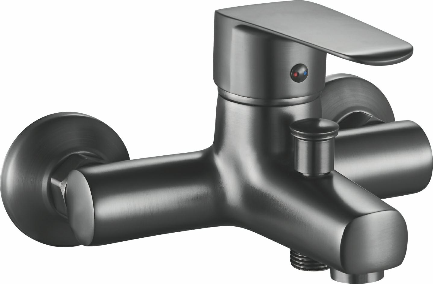 Jest to szary kran wannowy w kolorze brązu wyprodukowany przez firmę Haogeer w Chinach, zainstalowany na ścianie łazienki, który może regulować natężenie przepływu temperatury wody. Główny korpus to pozioma konstrukcja rurowa, a powierzchnia jest odporną na zużycie i korozję szarą powłoką w kolorze brązu, która jest kompatybilna z nowoczesną łazienką.